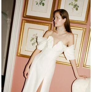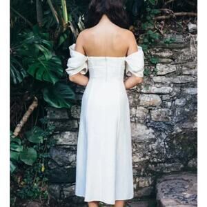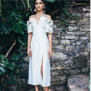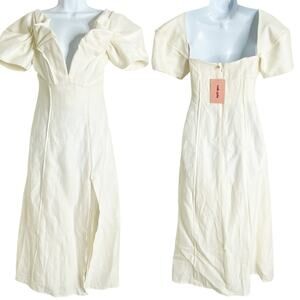 NWT Cult Gaia Muna Puff Sleeve Raw Edge Linen Cream Midi Dress 2