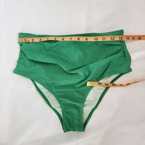 New with tags! Classic green bikini bottoms are high rise with tummy control and slight ruching detail. Medium rear coverage. Measurements in pictures.