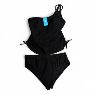 Cupshe Black One Shoulder Tankini Set Size Large NWT Swimwear