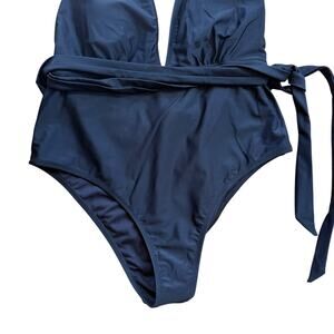 NWT Cupshe Black Swimsuit One Piece Plunge Backless Self Tie Racerback Large