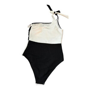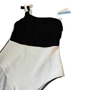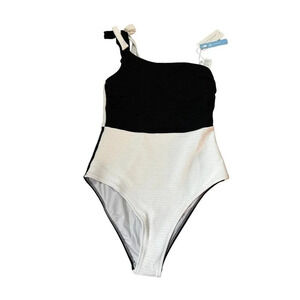 NWT Cupshe Black & White Color Block OnePiece Swimsuit Bow Knot Size Large 12/14