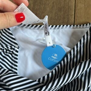 NWT Cupshe Black and white striped high waisted bikini bottom size small