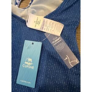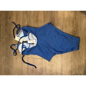 NWT Cupshe Blue Lurex Plunging Crossback One-Piece