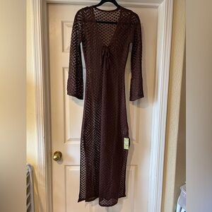 NWT Cupshe Brown Maxi Crochet Swim Coverup Size XS