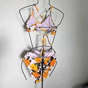 NWT- never worn! CUTE floral high-waisted bikini with cross-back top & striped cut-out detail at waist