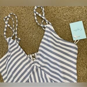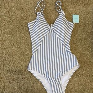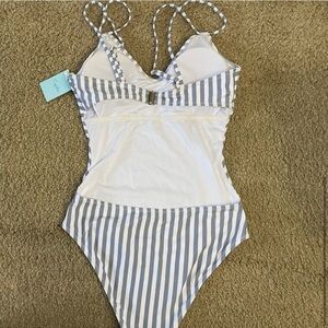 NWT Cupshe High Cut Leg Open Back Striped Gray And White One Piece Swimsuit Size S