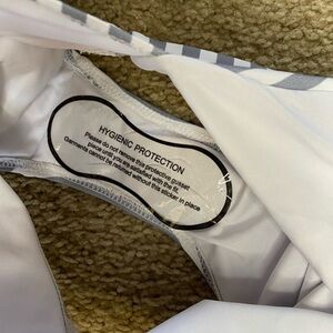 NWT Cupshe High Cut Leg Open Back Striped Gray And White One Piece Size S