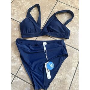 NWT Cupshe M Simple Cute Bikini Set Swimsuit Navy Blue