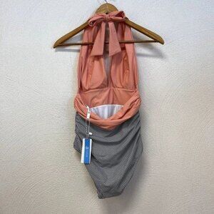 NWT Cupshe One Piece Push Up Deep V Contrast Fabric Backless Swimsuit Size Small