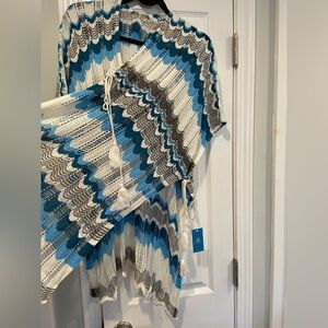 NWT Cupshe One Size Blue White Open Knit Side Tie Tassel Swinsuit Coverup