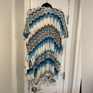 Pullover side tie tassel v neck open knit chevron blue white swimsuit coverup