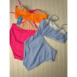 NWT Cupshe One-Piece Swimsuit Seersucker Cutout & Crossover Halter Bundle Size S