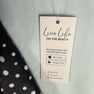 NWT Cupshe Scalloped Tankini Swim Top Size MEDIUM Blk/Wht Retro Beach Polka Dot