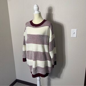 NWT Cupshe Striped Burgundy & White Knit Sweater Tunic / Dress Women's Size M