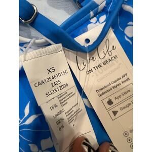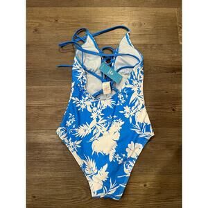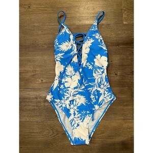 Light blue floral swim suit. New with tags. Beautiful lace up front and open back size xs.