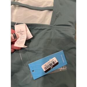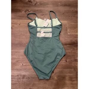 Light green olive color. Has padding. This one is slim and sculpt so it includes shapewear technology. Size: s
