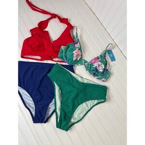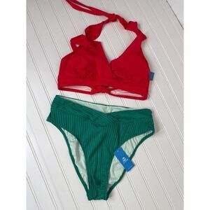 NWT Cupshe Swimsuit - Red Halter Floral Underwired Top & Bottom Bundle Sz L