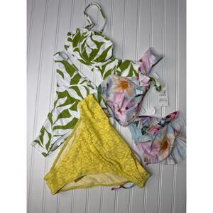 NWT Cupshe Two Piece Swimsuit Palmer Lace-Up Bikini Top Hi-Rise Bikini BUNDLE M
