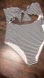 Never worn. Strapless stripped bathing suit. Cut out in the middle
