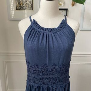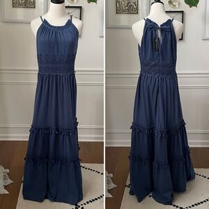 NWT Curations Maxi Dress Lace Trim Blue Indigo M