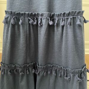 New with tags, Curations tiered maxi dress in indigo blue. Decorative tassels punctuate the tiers.