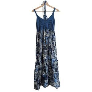 NWT Current Air Halter Neck Tiered Maxi Dress Crochet Blue, Women's Size XS