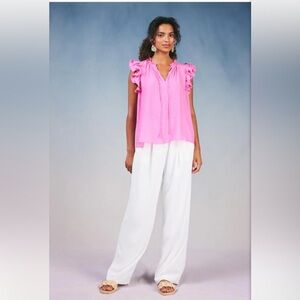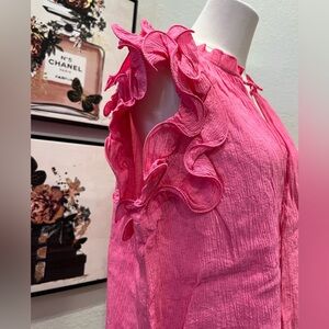 NWT Current Air RUFFLED SHOULDER SLEEVELESS BLOUSE- Pink- Size Small