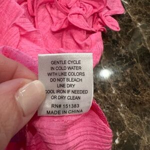 This is a Current Air sleeveless blouse in pink, size Small. The blouse features ruffled shoulder straps and a V-neckline. Made of lightweight polyester, it has a regular fit and is accented with ruffles. This item is new with tags and is a basic style suitable for women's clothing.