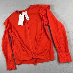 NWT Current Elliott The Asley Poinciana Orange Long Sleeve Button Up Blouse 2