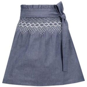 NWT Embroidered Current/Elliot Smocked Chambray embroidered Skirt with self tie belt