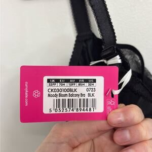 NWT Curvy Kate Moody Bloom Balcony Bra in Black - Size 32H