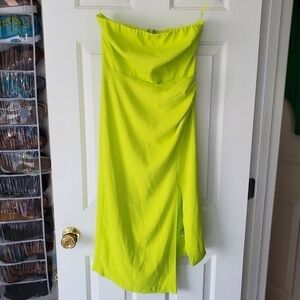 NWT Cushnie Lime Green Strapless Side-slit Dress Size 4