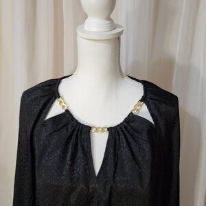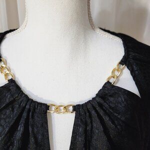 New with tag. Beautiful black reptile patterned woven blouse with cut outs and chain detail.