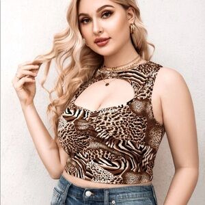 👀 NWT Cut out Neck line top. Size 20W. Crop top length sleeveless Animal Print