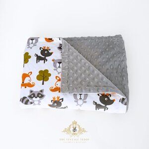 NWT Cute Children's Soft Plush Minky Reversible Blanket Woodland Animals Friends