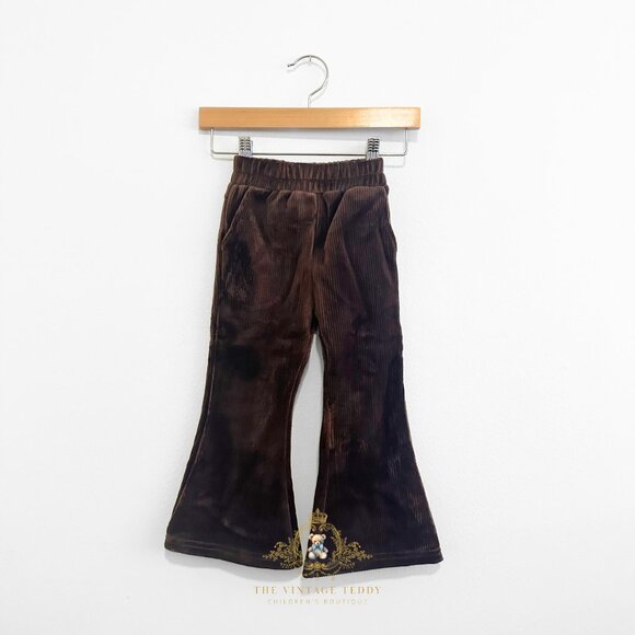 NWT Cute Girls Plush Rib Corduroy Flair Leg Elastic Waistband Chocolate Brown 2T