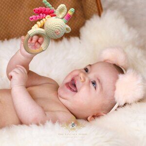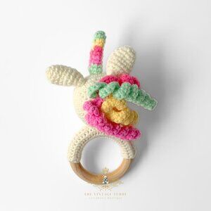 NWT - Cute Handmade Crochet Unicorn Baby Rattle Baby & Toddler Wooden Plush Toy