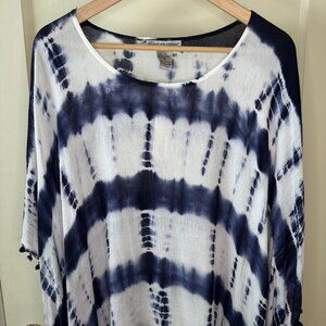 NWT - Cute Options Tie Dyed Swimsuit Coverup - Navy Blue and White Size Medium