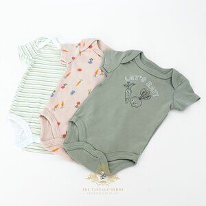 NWT Cute Unisex 3 Piece Matching Set Baby Onesies Let's Eat! Veggies Sage 3-6M