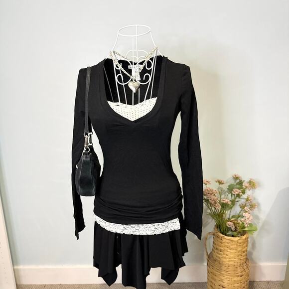 NWT Cute vintage y2k black tight long sleeve Henley grunge v neck top 🌿