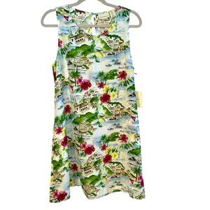 NWT Cynthia Rowley Linen Sleeveless Shift Dress Watercolor Amalfi Coast Size L