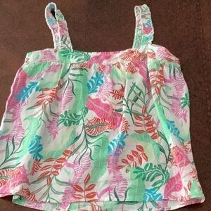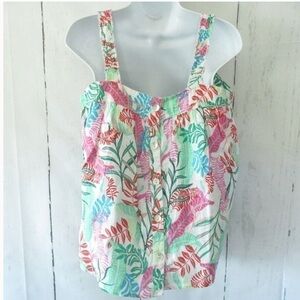 NWT/ Cynthia Rowley Linen Tank Floral Smocked Tropical Hawaiian
