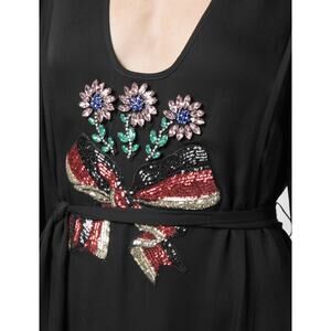 NWT Cynthia Rowley Marquette Applique Aline Maxi dress size 2. Excellent new condition with beautiful sequin and gemstone applique detail. The dress has a belt to wrap around the dress or tie in the back. It's made of 50% sil, 50% viscose and the lining is 50% polyester. I would personally recommend the dress be dry cleaned because of the applique detail and the material it's made with. Whoever is the lucky buyer of this dress I would recommend a good steaming to straighten out all the wrinkles before wearing it to any occasion. Please note the model in the photos is 5'9" and also wearing heels and wearing the same size dress as my listing (size 2).