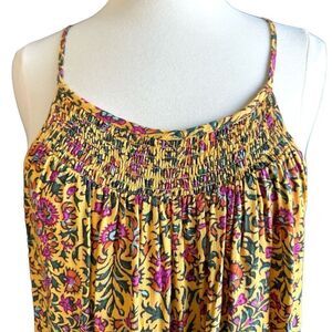 NWT Cynthia Rowley Smocked Pleated Floral Halter Keyhole Blouse Mustard Pink