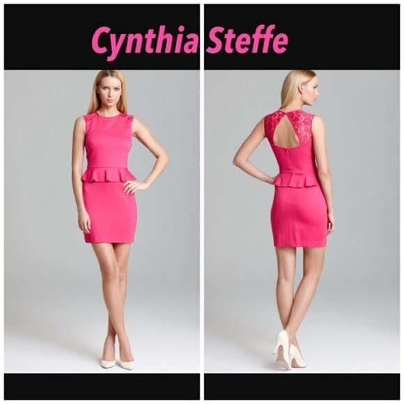 Cynthia Steffe Hot Pink Lace Cutout Back Bodycon Peplum Dress