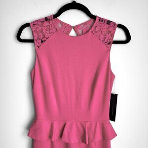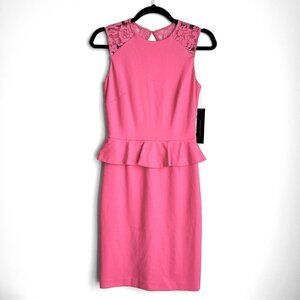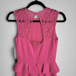 NWT Cynthia Steffe Hot Pink Lace Cutout Back Bodycon Peplum Dress