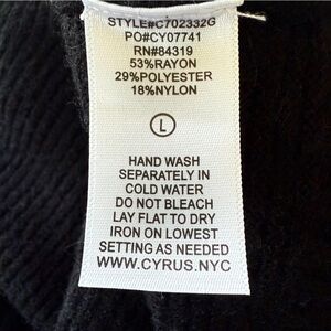 Chic black turtleneck sweater by Cyrus. Features stylish button details on sleeves. Perfect for versatile wear.