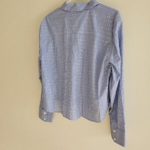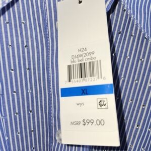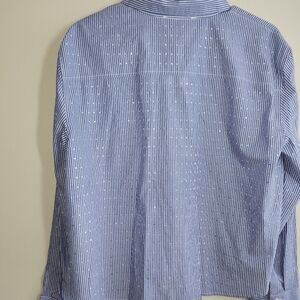 NWT. Embellished with sequins on the front and back and sleeves. Elevate your style with this classic blue striped shirt. Perfect for any occasion.