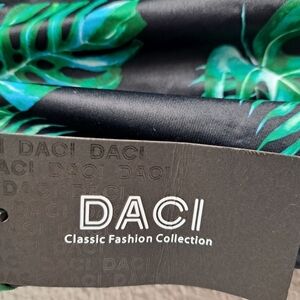 black & green leaf pattern, princess neckline, ruched mid section, adjustable straps