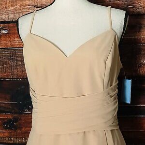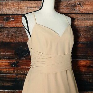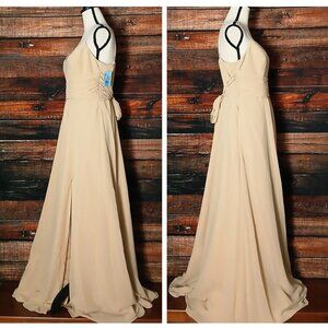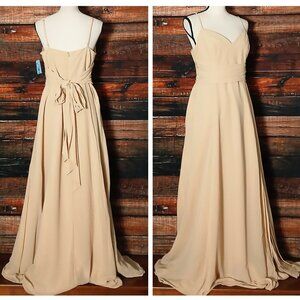 NWT DB Studio Celebrate Dress Size 12 Full Maxi Gown Golden Tan Chiffon Tie Back